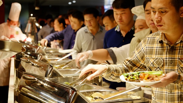 自助餐台和服务人员